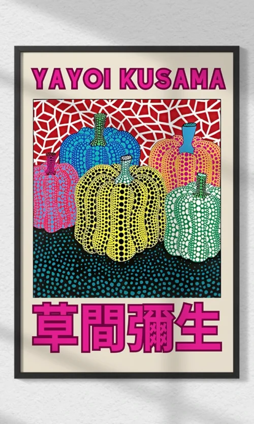 Descubre el infinito universo de Yayoi Kusama con este vibrante póster. Su explosión de colores y repetición de lunares reflejan la energía creativa de la artista japonesa. Perfecto para quienes desean añadir la inconfundible estética de Kusama a sus espacios, es más que arte: es un portal a su maravilla visual.
