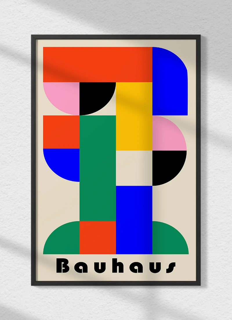 Sumérgete en la estética innovadora y revolucionaria de Bauhaus. Este icónico movimiento artístico alemán cambió la forma en que pensamos sobre el diseño, la arquitectura y el arte. Este poster es una celebración de la esencia de Bauhaus: líneas limpias, formas geométricas y un enfoque en la funcionalidad y la simplicidad.