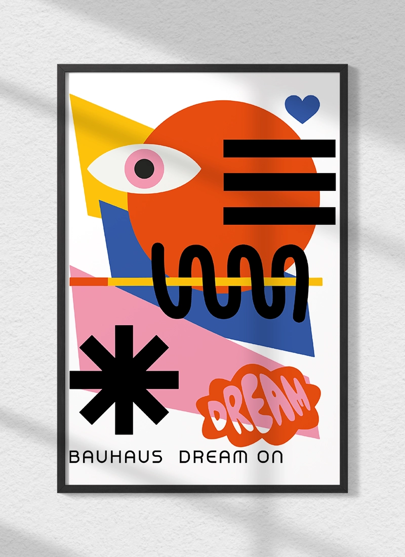 Sumérgete en la estética innovadora y revolucionaria de Bauhaus. Este icónico movimiento artístico alemán cambió la forma en que pensamos sobre el diseño, la arquitectura y el arte. Este poster es una celebración de la esencia de Bauhaus: líneas limpias, formas geométricas y un enfoque en la funcionalidad y la simplicidad.