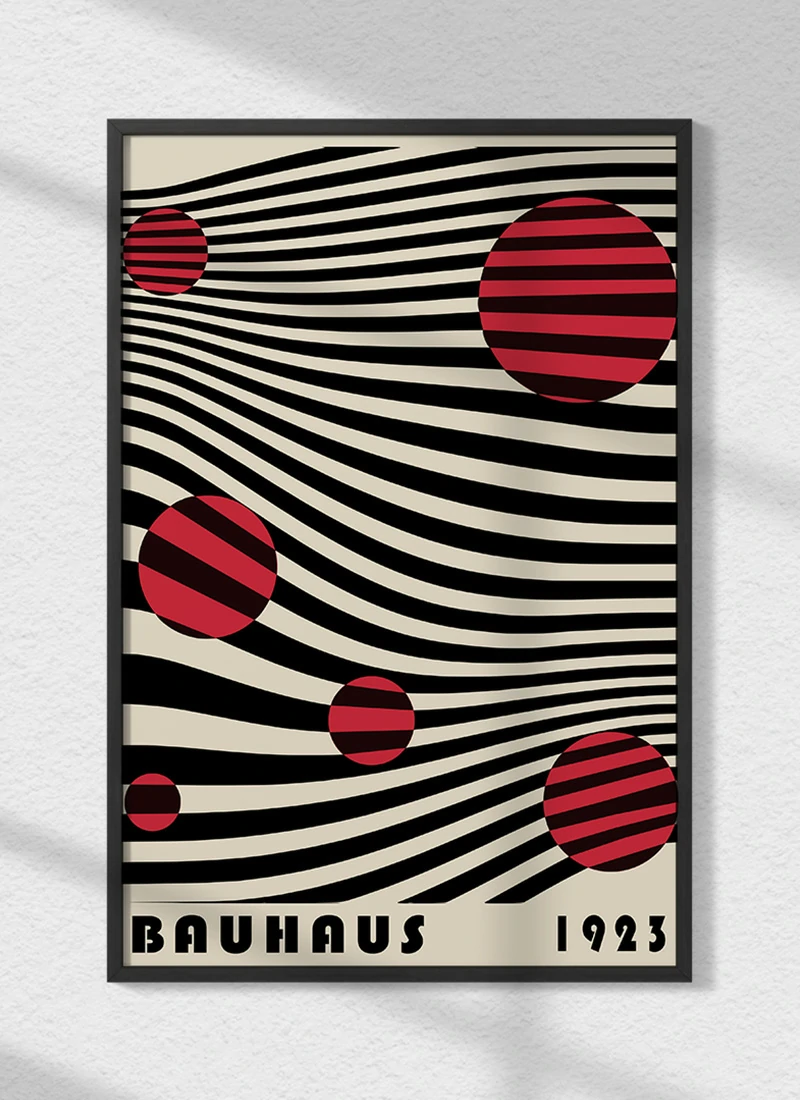 Sumérgete en la estética innovadora y revolucionaria de Bauhaus. Este icónico movimiento artístico alemán cambió la forma en que pensamos sobre el diseño, la arquitectura y el arte. Este poster es una celebración de la esencia de Bauhaus: líneas limpias, formas geométricas y un enfoque en la funcionalidad y la simplicidad.