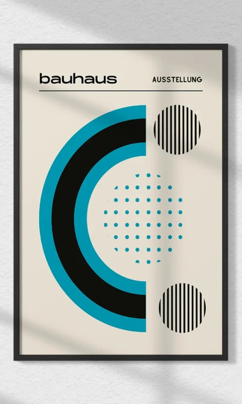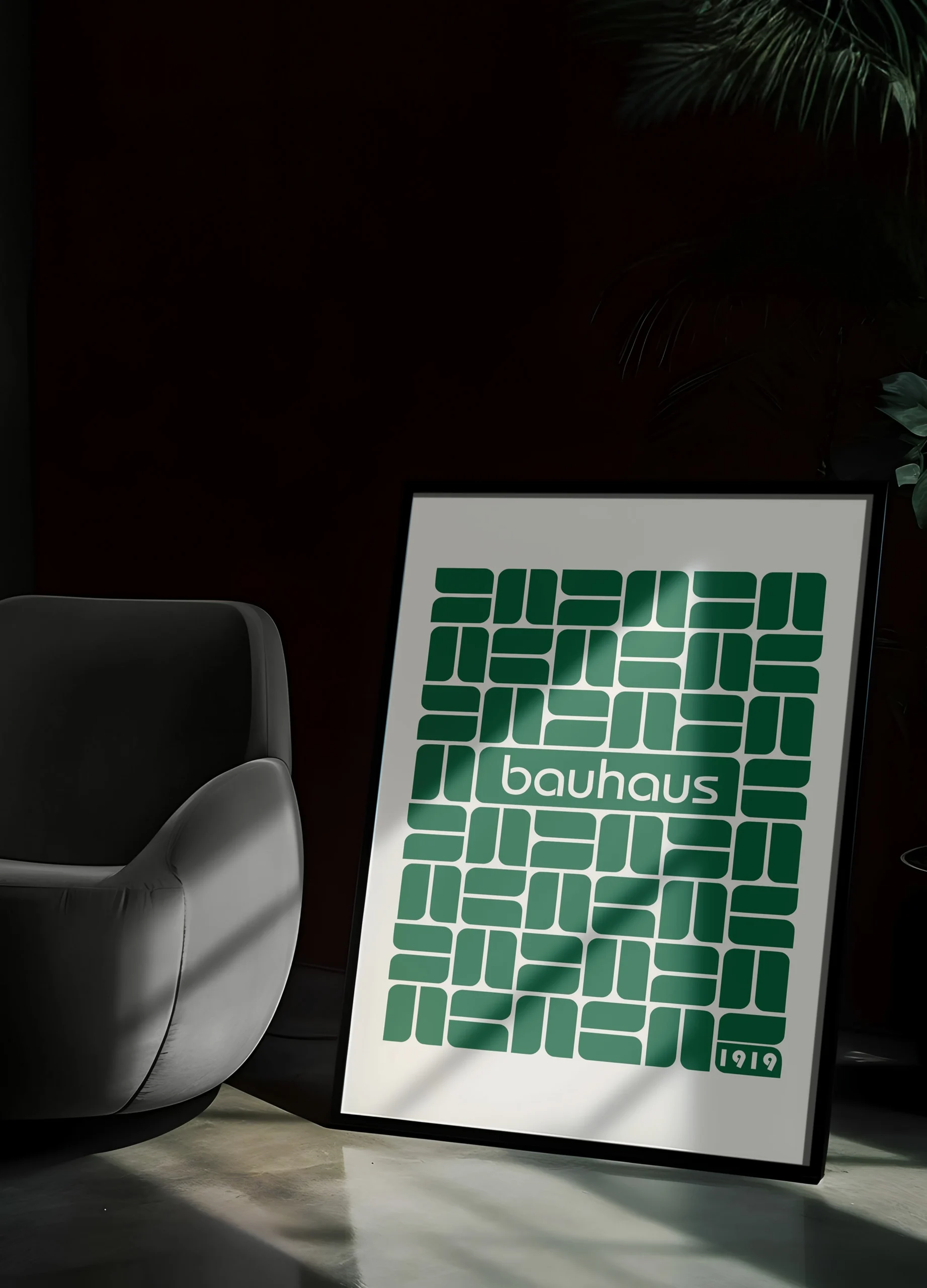 Sumérgete en la estética innovadora y revolucionaria de Bauhaus. Este icónico movimiento artístico alemán cambió la forma en que pensamos sobre el diseño, la arquitectura y el arte. Este poster es una celebración de la esencia de Bauhaus: líneas limpias, formas geométricas y un enfoque en la funcionalidad y la simplicidad.