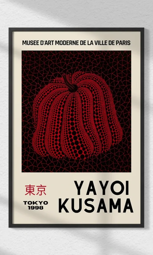 Déjate envolver por la magia de Yayoi Kusama con este vibrante póster. Una explosión de colores y la repetición de lunares distintivos reflejan su energía creativa infinita y su visión única. Ideal para quienes buscan llevar la inigualable estética de Kusama a sus espacios, es más que arte: es un portal a su universo visual.