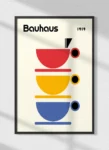 Sumérgete en la estética innovadora y revolucionaria de Bauhaus. Este icónico movimiento artístico alemán cambió la forma en que pensamos sobre el diseño, la arquitectura y el arte. Este poster es una celebración de la esencia de Bauhaus: líneas limpias, formas geométricas y un enfoque en la funcionalidad y la simplicidad.