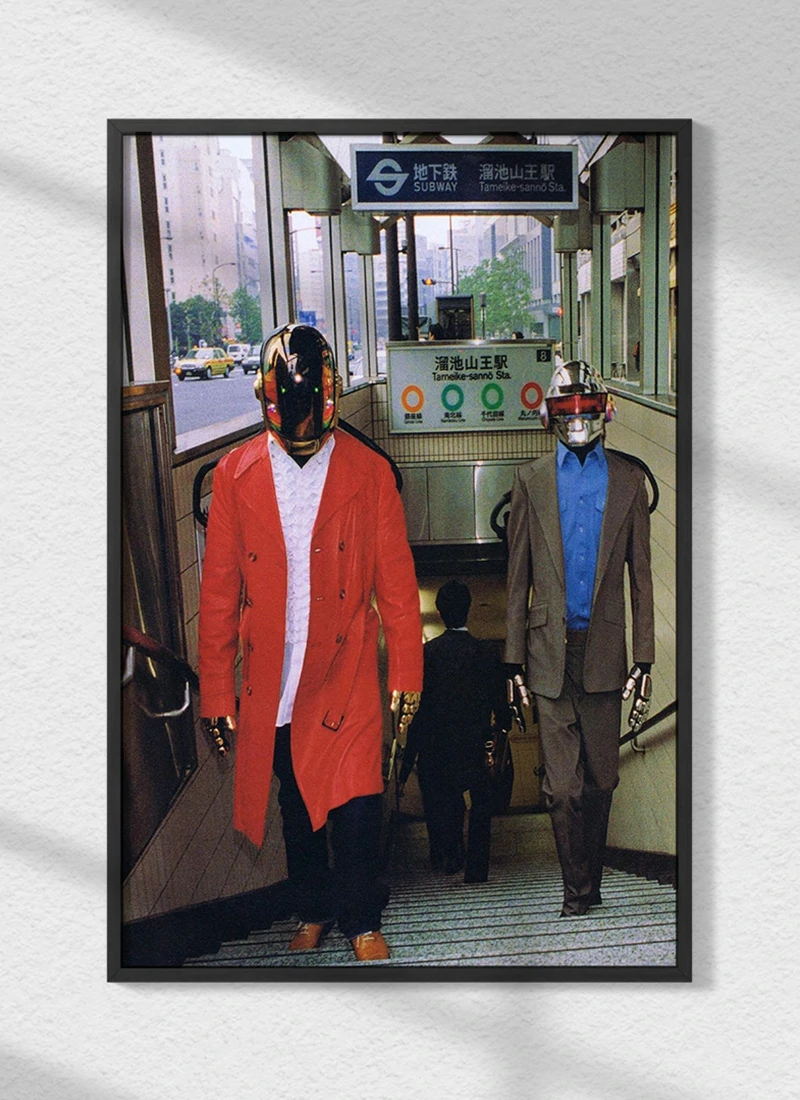 Descubre la fusión perfecta de la música electrónica y la cultura japonesa con este poster exclusivo de Daft Punk en Japón.